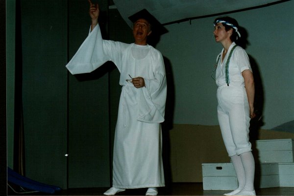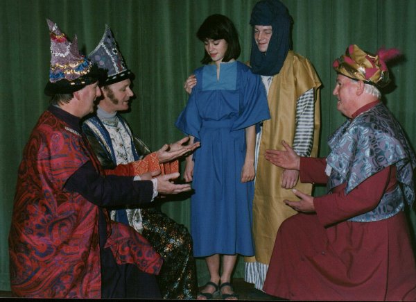 Parker This was the first SMASH production! Iain Waddell (the director) wrote in the programme: Follow the Star tells the nativity in a fresh, amusing and joyful way without losing the impact of the basic Christian message. It was first produced at the Chichester Festival Theatre and then at the Westminster Theatre in London in the middle 70s, followed by a television production of the show. As the show opens we meet God, known as Olly, in his “office” in heaven. He requires an angel to let Mary know that she is about the give birth to a son, and he selects Gabby (Angel Gabriel) for the job. Gabby is delighted because this will give him the opportunity to become taller, as apprentice angels who carry out tasks like this efficiently will then “grow a bit”. We then meet Angel Chicago who is having a very difficult time because he is Herod’s guardian angel. Chicago, a slightly unorthodox angel, is nevertheless a very hard working one. His pleas to Herod to “be good” are largely ignored. Herod continues to hate nice boys and girls and tries to convert those in the audience to evil ways. Gabby’s appearance to Mary doesn’t go quite as planned, but the audience is encouraged to give him a second chance to grow taller. Meanwhile, three senior angels (Angy, Jelly and Lofty) have been allocated a task. They have to let three wise men know, through reading their books of knowledge, that they should follow a star to find the new King. As Olly says to the audience – You
