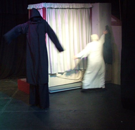 of Christmas Yet to Come takes a break during rehearsals